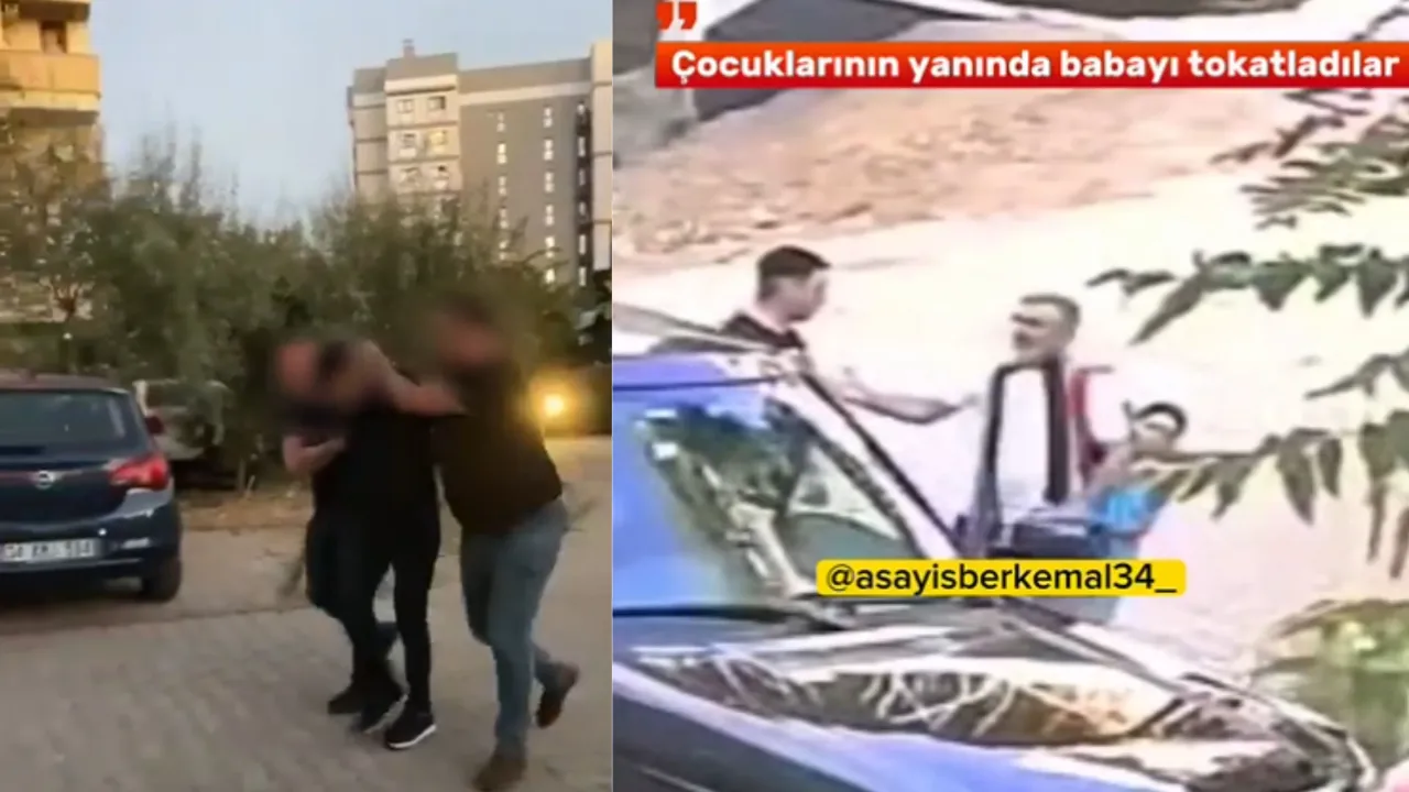 Bunun üzerine geri manevra yapan sürücü, cipi durdurup karşıdaki kişi ile bu tartışmaya başladı. Tartışma kısa sürede kavgaya dönüştü. Arabadan inen şahıs çocuklarının yanında babaya tokat attı.