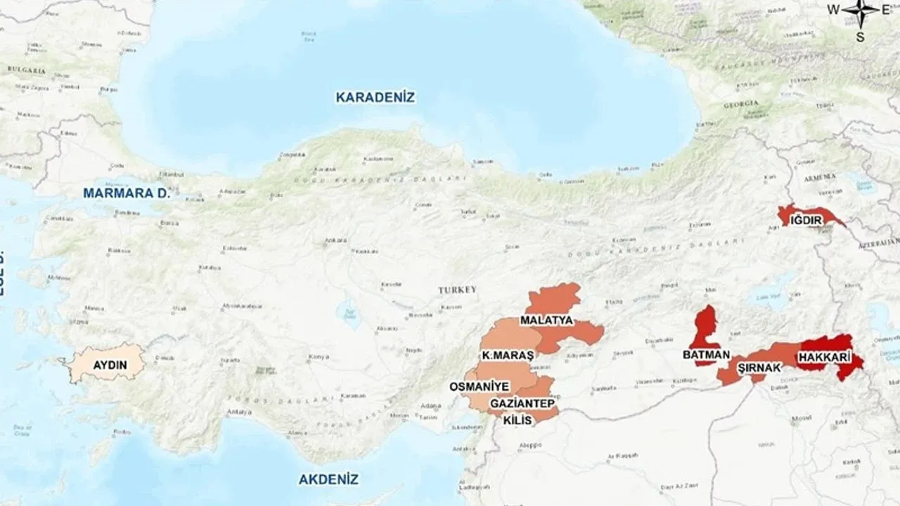 Güneydoğu Anadolu Bölgesi'nin önemli sanayi kentlerinden olan Gaziantep’in yanı sıra, Batman, Iğdır, Şırnak, Malatya, Hakkari, Kahramanmaraş, Osmaniye, Kilis ve Aydın da ilk 10’da yer aldı.